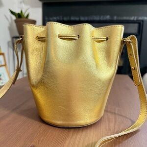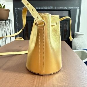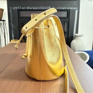 Sezane Micro Farrow Bucket Bag Gold Leather Handbag Purse