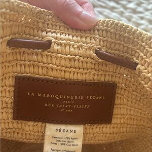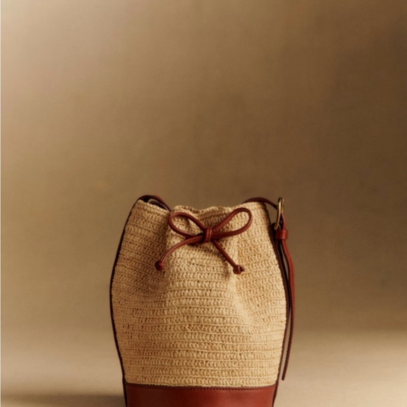 Chic bag with a woven tan body and brown leather accents. Perfect for everyday style. Great condition! Used only a handful of times.