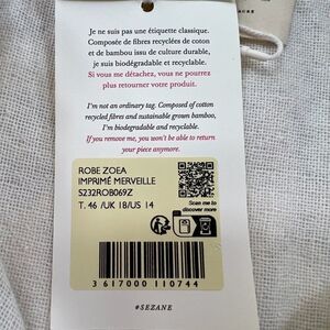 This Sézane Zoea dress combines elegance and comfort with its flowing design, featuring a floral print and eco-friendly cotton composition for lasting wear.