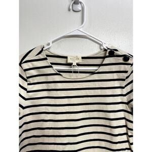 NWOT Stylish navy and white striped blouse. Features long sleeves and a classic round neckline. Perfect for casual wear.