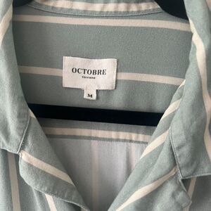 Sezane Octobre Editions Shirt Size M Natural Stripe Sage and Cream
