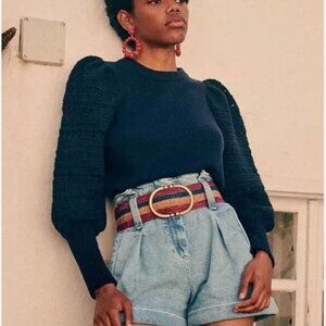 Sezane Orion Sweater Jumper Wool Knit Crochet Balloon Sleeve Navy Blue S Small