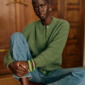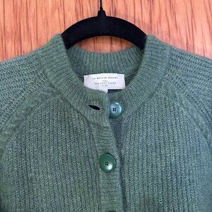 Long-sleeved cardigan in baby alpaca. Cable knit on the armholes, cuffs and hemline. Round neckline. Bought in London in December and have only worn it once. It can easily fit S to M. Size XS. In excellent condition.