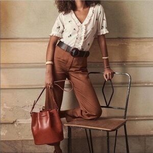Sezane Patalon Jude Pant Trouser Coffee Brown Cropped Wide Leg