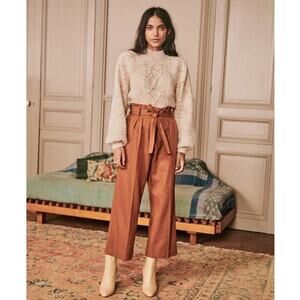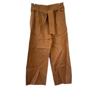 Sezane Pierre Trouser in Hazelnut. Size France / Spain 38 = USA 6. Features wide leg, hook and zipper closure, waist tie, front pockets, one back pocket, paperbag waist. 100% linen. Excellent condition, no flaws.