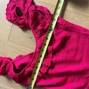 Chic pink top with ruffle details. Sleeveless design. Perfect for casual outings. Excellent like new condition.