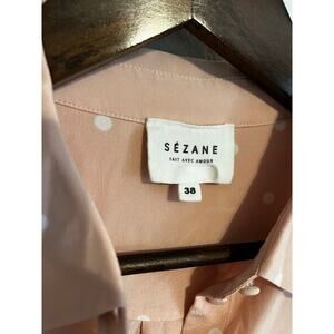 SEO Keywords: Sezane, polka dot, silk, button down, Pierro shirt, pale pink, size 6, women's fashion, designer blouse, luxury clothing