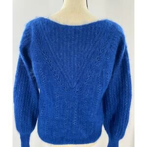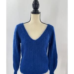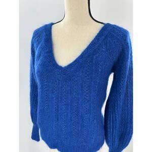 Sezane Pull Rosa Sweater Indigo Blue Mohair Wool Knit V Neck Pullover Jumper S