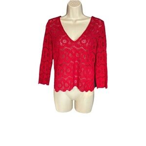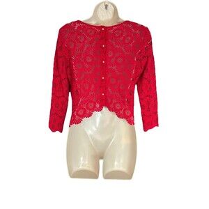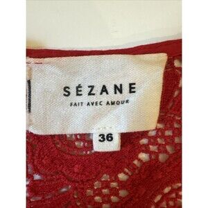 Sezane Red Size 4 36 Crochet Lace Colette Blouse Button Back Cotton Blend
