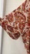 Chic midi dress with red and white paisley pattern. Short sleeves and elegant design. Has fabric buttons and a matching belted tie.