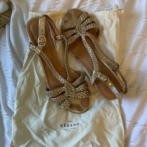 Sezane Rosa Sandals US Size 7 in Smooth Gold