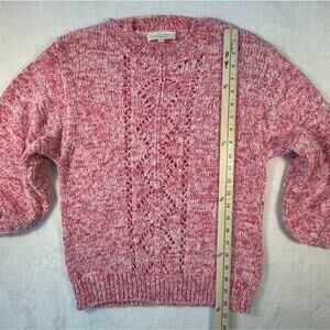 Sezane Rosita Balloon Sleeve Jumper Knit Sweater Pink Red White Small