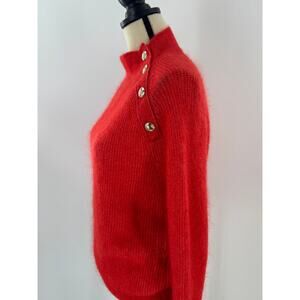 Sezane Rudy Jumper Mohair Wool Sweater Gold Button Crew Mock Neck Medium