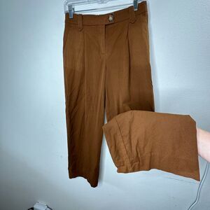 Sezane Rust Brown Pleated Wide Leg Trouser Pants Zip Button Closure 34 / US 2