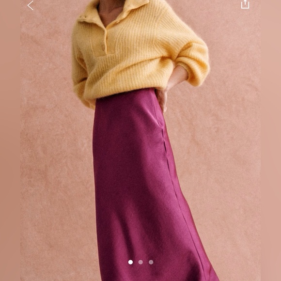 Chic fuchsia midi skirt by Sezane. Sleek and modern look. Style is Sandy.