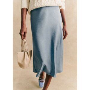 Sezane Sandy Midi Skirt Womens Size 36 US 4 Ice Blue Satin Minimalist Parisian