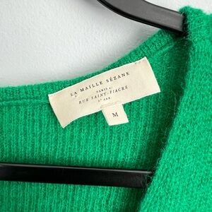 Sezane Size M • Button Up Cardigan Sweater Alpaca Mohair Green Long Sleeve.