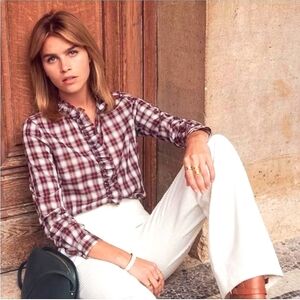 Sezane Solange ecru rouge blouse XS NWOT