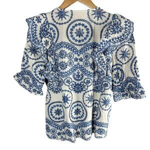 Sezane South Blouse Embroidered Floral Eyelet Blouse Summer French Blouse US 6