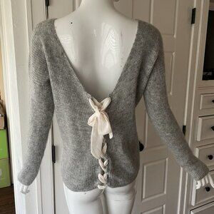 Sezane Sweater Super Kid Mohair Baby Alpaca Gray Lace Up Back Coquette Small