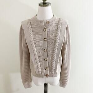 Sezane Tan Rebecca Cardigan Sweater Women's Sz Small Wool/Cotton Blend Button Up