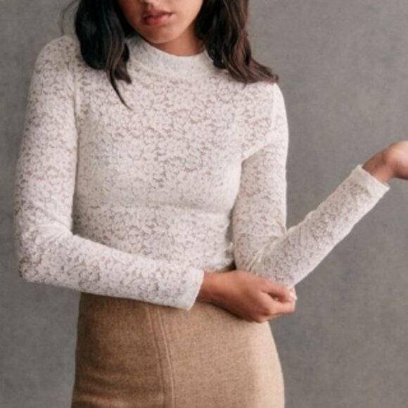 Sezane Taori Blouse Dentelle Ecru Lace Size 46/ US 14