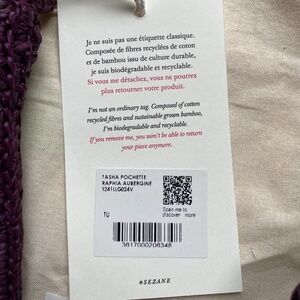 Sezane Tasha Raffia Crossbody Pouch NWT. Aubergine color with wonderful resin beads. Dust cover included, of course! Pristine condition. Start wearing purple! :)