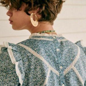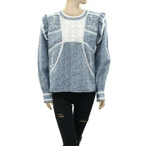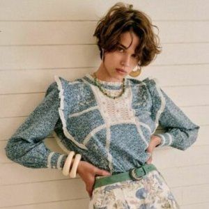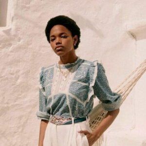 Sezane Teresa Floral Printed Lace Ruffle Embroidered Blouse Top, size XXL