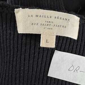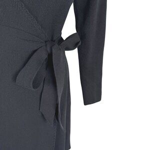 Sezane Tina Wrap Dress Large Black Merino Wool Blend Ribbed V-Neck DR-1807