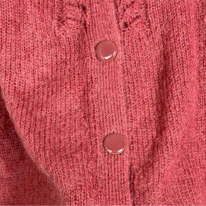 Sézane Tonio Jumper Sweater Knit Cardigan in Berry Pink and Women’s Size Small. 40% polyamide, 32% kid mohair and 28% merino wool. Super soft. Fancy knit. Button front. Enamel buttons. Made in China. Hand wash. Very good pre-owned condition. No visible flaws.
