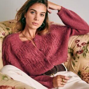 Sezane Tonio Mohair Merino Wool Sweater Cardigan Knit Berry Size Small French S