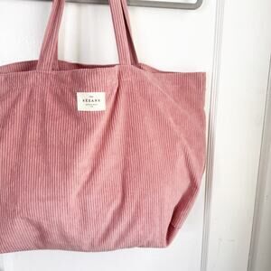 Sezane Tote Bag Pink La Maille Ribbed Corduroy Double Handle Lined Rectangular