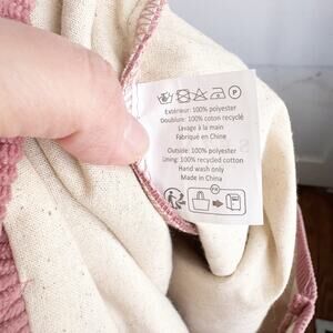 Sezane Tote Bag Pink La Maille Ribbed Corduroy Double Handle Lined Rectangular OS. Very good, preowned condition. Oatmeal/burlap style lining. Rose pink, ribbed exterior. Outside: polyester. Inside: recycled cotton.
