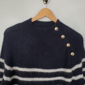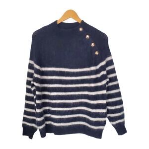 Sezane Trudy Jumper Striped Sweater Navy Ecru Mohair Merino Wool Blend Small