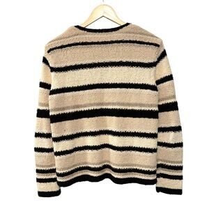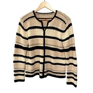 Sezane Vintage M Hand Knit Sweater Jacket SILK Cotton Stripe Neutrals Tan Black