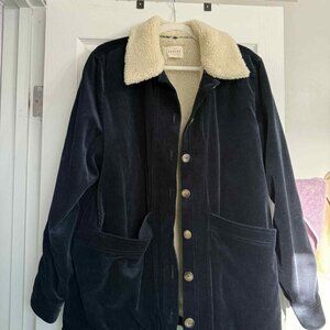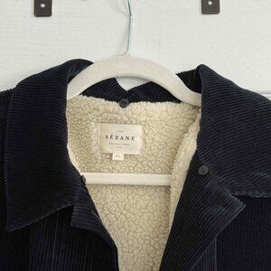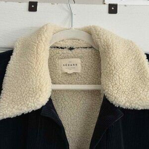 Sezane Will Jacket Navy Faux Sheepskin Collar - Size XL