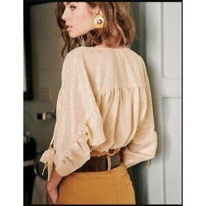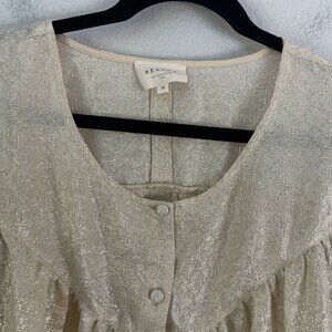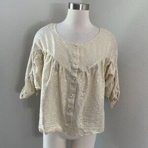 Sezane Womens 4 US Metallic Button Up Blouse 3/4 Ruched Sleeve Shirt Top