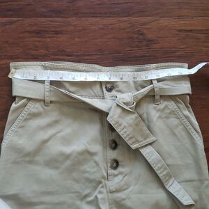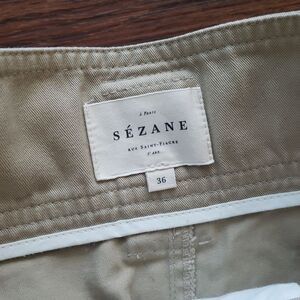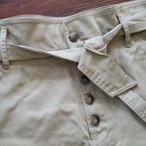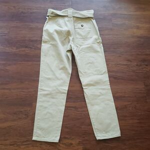 Sezane Women's Khaki Tan Preppy Belted High Waist Pants 100% Cotton Size 36