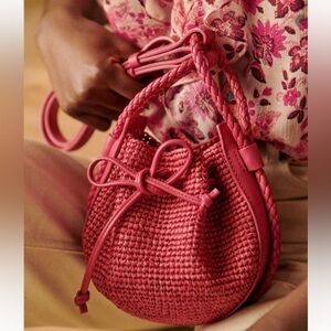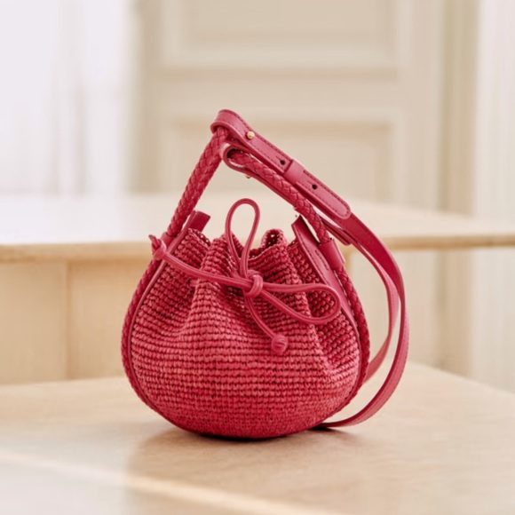 Sezane ZÉLIE MINI BUCKET BAG raffia pink