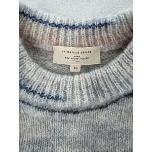 Sezane Zenia Sweater Ivory Wool Alpaca Blue Tan Stripe Pullover Knit XS S