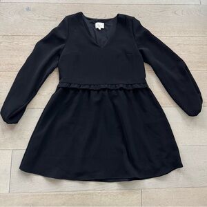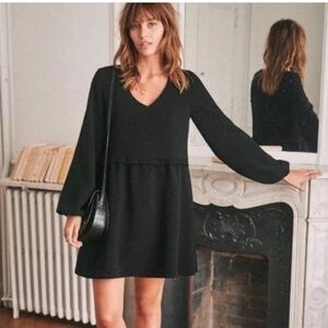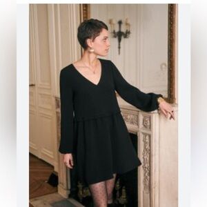 Sezane black Mini Dress long sleeves elastic cuffs V Neck 36