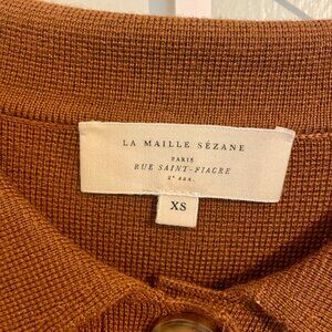 Sezane deep caramel brown merino wool sweater jacket sz XS