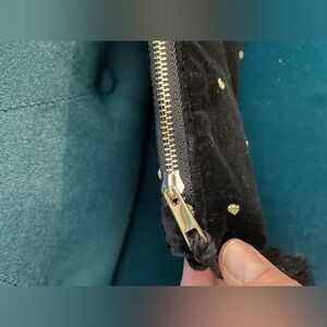 Sezane zippered pouch. It’s a velvety material with a tassel zipper. I never used it. Pristine! Use it as a makeup bag or small clutch.