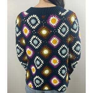 Sfera Casual Crochet Knit Sweater Size Small Colorful Geometric