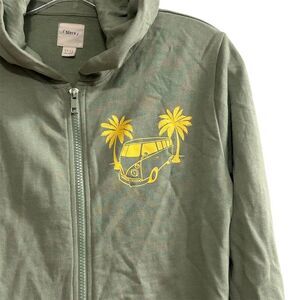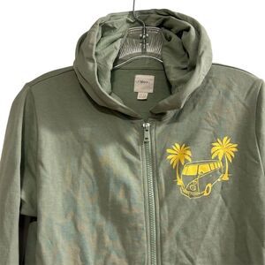 Sfera Kids Green Zip-Up Hoodie Size 12 Palm Tree & Van Design