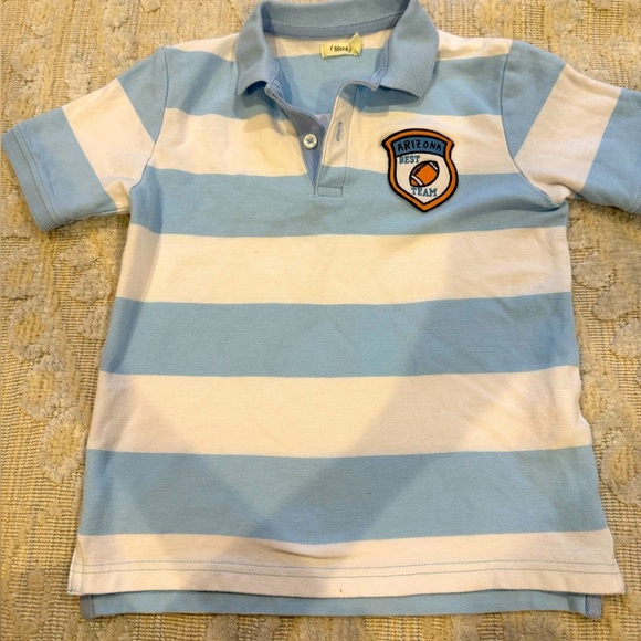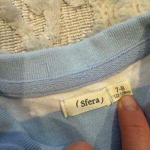 Sfera (Spain) boys Polo Shirt Size 7-8 Cotton white and light blue stripes