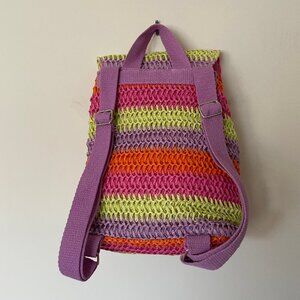 Flap and adjustable straps, green, pink, orange, purple stripes