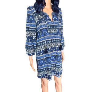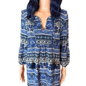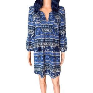 Sfera Women’s Boho Blue Embroidered Summer Print Mini Dress Size Medium