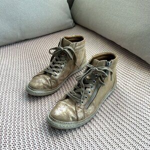 aesthetic trendy women’s sneakers hightop zip trainers gold feminine metallic kawaii cute stylish