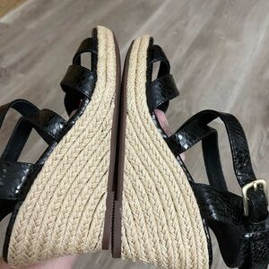 Söfft Black Leather Wedge Sandals with Ankle Closure